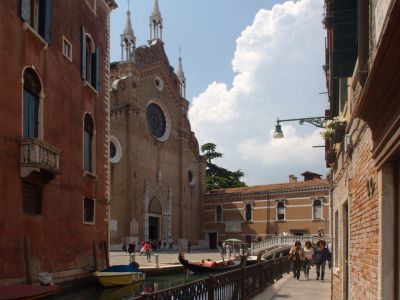 Within the San Polo district are some of Venice's most famous sights. Among them is the Rialto Bridge, one of four bridges that spans the Grand Canal and its oldest crossing. In fact, this is the oldest part of the city and a walk through the labyrinth of narrow lanes will reward you with ancient buildings, and cafés that have been in families for generations. Make a point of going to San Giacomo di Rialto, which some believe is the oldest church in Venice. According to local lore it was consecrated in the 5th century, although the building you see today dates back to the 16th and 17th centuries. Nearby is one of the most popular attractions in this part of the city, the Rialto fish market where you can purchase fresh fish and shellfish that have been plucked from the Adriatic Sea and the Venetian Lagoon. There's more shopping in the neighboring streets where you'll find bakeries, wine shops and florists among other enterprises. As you tour the area, pause to look over the Grand Canal and the many passing gondolas.