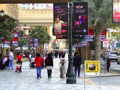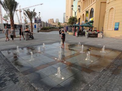 In addition to exploring the shops, there is the promenade's Covent Garden market, where among other items you can purchase clothing, accessories, handcrafts and sweets. As you progress along the promenade you may be entertained by a variety of street performers, including jugglers and stilt-walkers. During your stroll, keep an eye out for art exhibitions that present the colorful works of artists from the United Arab Emirates.