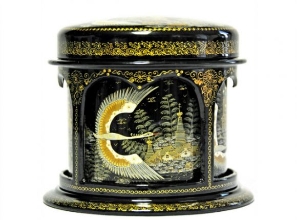 Russian lacquer art stems from the highly evolved technique of icon painting practiced in the Imperial Russia prior to the Bolshevik Revolution of 1917. Following the revolution and the ensued anti-church campaign, many of the icon painters lost their jobs and had to resort to alternate forms of art in order to make a living. One such alternative was the making of papier-mâché decorative boxes and panels, lacquered and hand-painted. The most popular motifs used in decoration of such items are the scenes from Russian fairy tales.