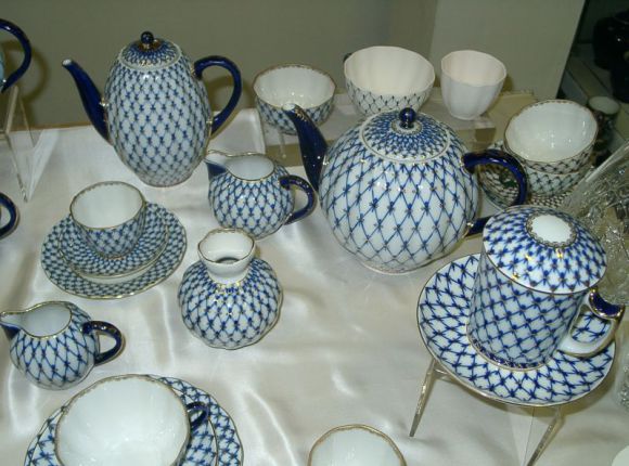 Imperial Porcelain is the product of The Imperial Porcelain Manufactory (IPM), also known by its Soviet name - The Lomonosov Porcelain Factory, which is one of, if not "the" best china manufacturer in Russia. The factory was established in 1744 in the town of Oranienbaum (currently Lomonosov). Engineer Dmitry Vinogradov developed formula for the porcelain similar to that of Saxon, which was heavily guarded a secret. The Russian porcelain was made entirely of Russian ingredients. In the beginning, the factory produced wares only for the Russian Royal family and Imperial Court. Nowadays, the Imperial Porcelain is widely available and even exported. Cobalt net, a signature pattern of the Imperial porcelain, was introduced in 1949 and has become the factory's trademark ever since. The range of porcelain produced by IPM is vast and includes tea & coffee sets, dinnerware, etc., while the Cobalt Net collection remains the most popular item. Prices range from $15 for a simple cup to $11,000 for a set of sophisticated dinnerware.