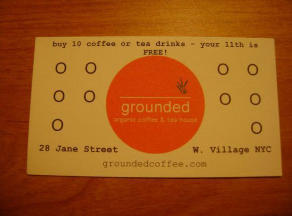 The outside sign of Grounded reads, "We love coffee and you". This is your eclectic demographic akin to the West Village organic coffee and tea bar. Great lighting, plants and spacious design, including a red velvet couch that stands out, are all nice touches. But, they have a 90 minute seating policy. By the listing of local events, hangs a huge varied menu displaying various drinks with cute names, and food. The smoothies: start with fruit, add juice or milk, then peanut butter, spirulina or soy powder. Prices vary according to selection. Their tons of (loose) tea for sale include: black, white, green, oolong, red, lots of flavors and blends. Rest assured everything is organic. Grounded also sells bags of coffee, along with a few pots. Card minimum is $5. All drinks are hand-chosen by the owners that started this place 7 years ago. Bonus card, buy 10 drinks, the 11th is free!