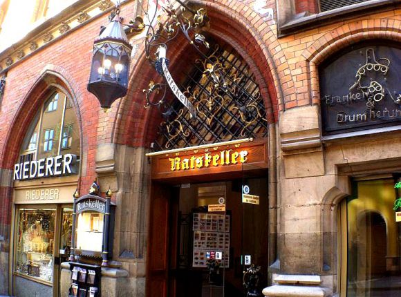 The new Rathaus, or town hall in English, is the large Gothic building in the middle of Marienplatz and it has served as Munich’s town hall since 1874. Located in the basement of the Rathaus, is the Ratskeller, a very traditional Bavarian restaurant and beer cellar. The tables are covered with white table cloths and decorated with small flowers; the low ceilings are adorned with beautiful paintings. All of these things, plus a bit of dim mood-lighting, create a very warm atmosphere for the guests. The prices are a little higher than at other Bavarian restaurants, but the food is also known for being consistently top-notch.