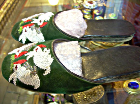 Nyonya beaded slippers, individually-sewn slippers with tiny beads of flower, bird or butterfly motifs, could be excellent reminders of visiting Malaysia. Baba and Nyonya refer to the descendants of Malays and Chinese who intermarried in the state of Malacca. Due to popular trading between Malaysia (Malaya, as it was known back then) and China, interracial marriages between the locals and incomers from China were rather commonplace. As a result, a group called Baba and Nyonya emerged in the region, with their own cultural and food traditions. Nyonya refers to the females of this group. It is possible for you to buy a pair of traditional Nyonya closed-toe beaded slippers for around RM80 or US$27 at Kuala Lumpur Craft Complex. The modern version is the peep-toe type. The price of these slippers depends on various aspects, such as material used, beads and size, and ranges from RM80 to a few hundred.