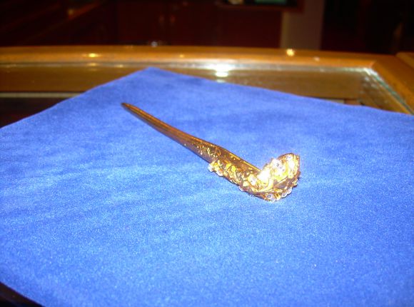 Cucuk Sanggul is a traditional Malay hairpin made of gold, silver or some other material. It is usually long and thin, with decorative end. The latter might feature some mythological creature or any other form of traditional Malay art. Such hairpin was previously used for securing a Malay woman's bun, and was held at the back of her head during a traditional wedding ceremony. The practice is largely in use even today, however, modern-day Cucuk Sanggul hairpins are not necessarily made of gold or silver, nor elaborately adorned. You can buy a modern type hairpin for RM130 or US$44. A traditional type may cost from RM200 to RM300 apiece, especially if categorized as antique.
