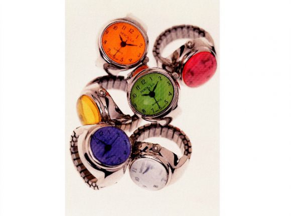 Always be on time while flaunting some finger flair with this bright green Museum of Contemporary Art (MOCA) ring watch. This stylish timepiece features an adjustable time knob to set time, precision Japanese quartz movement, a silver elastic ring to fit fingers of all sizes, a light green clock face featuring MOCA LA text and hour, minute and second functions. The ring watch, also available in blue, white, rose and purple, reflects the modern theme of the museum.