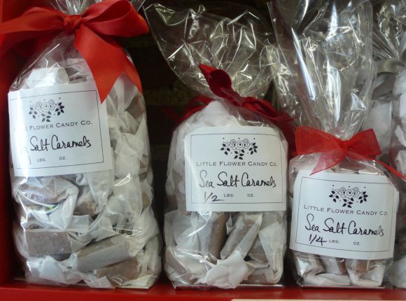 Chocolate turtles, pralines, Snicker’s bars and other salty nut/caramelized sugar combinations have been staples at confectionery shops for decades. Little Flower Candy Company’s bite-sized desserts are creamy, rich and perfectly accented by a few sprinkles of Fleur de Sel on top. In addition to sea salt caramels, the Little Flower Candy Company offers pretzel rolls, lemon bars, maple scones, sandwiches, pastries and salads, as well as a full breakfast menu and many vegetarian options. Quarter pound bags of sea salt caramels are $7 and available at the Little Flower Candy Company.