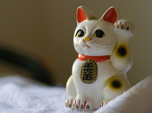 The most famous cat in Japan, known as Manekineko, lines the entrance ways of many restaurants, bars and shops around the country. While it is believed that Manekineko first appeared during the later part of the Edo period (1603–1867), the earliest documented evidence of it comes from the 1870s, during Japan's Meiji Period. This welcoming cat is a common sculpture beckoning its upright paw, as a symbol of good luck, to guests. The Welcoming Cat can be found gesturing both, its left and right hand; both are said to be of significance. The Manekineko is rather expensive, $70-90 U.S. dollars (about 7,000-9,000 Yen), but is durable and hand-crafted to last for generations. The popular Omote-Sando district of Tokyo, in conjunction with the Choyda Line, is known for selling these cats in a large variety.