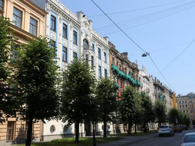 The street's most prominent architectural contributions come from Mikhail Eisenstein, a preeminent architect of the early 20th century, known for his extravagant and decorative designs. Eisenstein's works on Alberta Street, including buildings at numbers 2, 2a, 4, 6, and 8, showcase his unique style characterized by romantic nationalism-a theme prevalent in northern European architecture at the time. These buildings are adorned with elaborate sculptures, intricate balconies, and ornate columns that epitomize the Art Nouveau aesthetic.