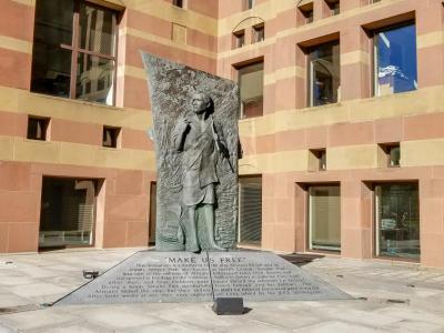 The Amistad Memorial in New Haven is a powerful bronze sculpture by artist Ed Hamilton, commemorating the 1839 Amistad Affair-an iconic event in the fight for freedom and justice in the United States. Located directly in front of New Haven City Hall on Church Street, the memorial stands on the very spot where the 53 Mende captives from present-day Sierra Leone were jailed while awaiting trial for mutiny and murder.