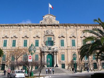 The Auberge de Castille is a significant building in Valletta, well-known for its impressive architecture and historical importance. Located at Castile Place, this Baroque masterpiece sits near landmarks like Saint James Cavalier, the Malta Stock Exchange, and the Upper Barrakka Gardens, offering a commanding view over Floriana and the Grand Harbour area from its elevated position in Valletta.
