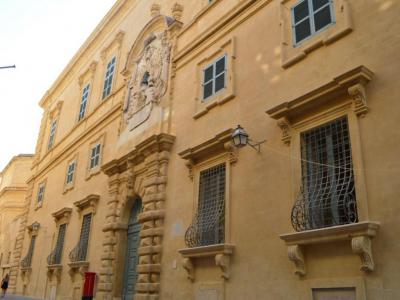 The Auberge d'Italie, situated in Valletta, was constructed during the late 16th century to accommodate knights belonging to the Order of Saint John from the Italian region. Designed originally in a Mannerist style by Girolamo Cassar and several other architects, the building underwent various modifications over the 17th century, culminating in a significant renovation in the 1680s under the magistracy of Gregorio Carafa, resulting in its Baroque appearance.