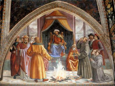 The crowning glories of Santa Trinita reside within the Cappella Sassetti, positioned to the right of the main altar. Painted between 1480 and 1485 by Ghirlandaio, a distinguished artist hailing from Florence and belonging to the esteemed "third generation" of the Florentine Renaissance (among whose apprentices was none other than Michelangelo himself!), these works comprise a magnificent fresco cycle and altarpiece. The artistry on display in this chapel exudes a harmonious blend of graceful decorative elements and a resolute portrayal of the artist's beloved hometown. The frescoes adorning the walls vividly depict episodes from the life of Saint Francis, while the altarpiece, titled "Adoration of the Shepherds", emanates a radiant luminosity.