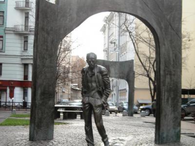 One of several monuments on Old Arbat that is easy to miss is the one dedicated to Bulat Shálvovich Okudzhava, a popular singer-songwriter who lived in the area and immortalized it in several of his songs. A Russian of Georgian-Armenian descent, Okudzhava was a master in his own field and one of the founders of the Soviet genre of "author song", somewhat similar to the French chansonnier style, very different from the mainstream back then. He had an exceptionally melodic voice, and, without any formal training in music, employed only a few chords on his guitar to accompany his sung poems full of metaphors and symbolism.