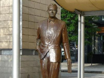 The statue, created by renowned sculptor Graham Ibbeson, was unveiled in December 2001, in Millennium Square, located in the heart of Bristol. The bronze sculpture captures Cary Grant in a characteristic pose, exuding his trademark elegance and sophistication. Dressed in a sharp suit, with a mischievous twinkle in his eye, the statue of Cary Grant walking with the book To Catch a Thief by Alfred Hitchcock in his hand. Grant played the main character in the movie of this book.