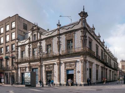 This Baroque-style edifice is distinguished for its lavish facade, with windows, balconies, and doors framed in carved stone, and French porcelain crowns on top. Still, the most notable feature of the exterior is, undoubtedly, the blue and white tiles from the town of Puebla covering the building on three sides.