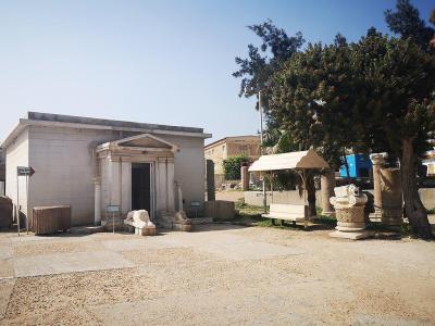 A historical archaeological site, the Catacombs of Kom el Shoqafa lie on the western necropolis of Alexandria and consist of three levels cut through solid rock, the third level being now completely underwater. It houses a series of Alexandrian tombs, statues and archaeological objects of the Pharaonic funeral cult with Hellenistic and early Imperial Roman influences. The Catacombs were named Kom El Shoqafa, meaning Mound of Shards, because the area used to contain a mound of shards of terra cotta which mostly consisted of jars and objects made of clay belonging to those visiting the tombs, who would bring food and wine for their consumption during the visit, but didn't wish to carry them back home from this place of death so they would break them.