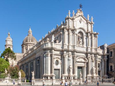 The Cathedral of Catania, also known as Cathedral of Saint Agatha, stands in the Cathedral Square (Piazza del Duomo). It is built in Italian Baroque style. The facade was fashioned in 1700 after a devastating earthquake in 1693. It has three levels with niches and columns of Corinthian granite.