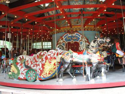 There is no gravity-defying surge, no virtual reality, no computerized light show, no 3D projection – just simple mechanical horses that go round and round, and up and down while lovely-cheesy old-timey music plays on, which is the same ride people have been having for decades and decades! While there's a fee for rides, watching and listening to the music is free.