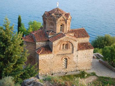 Christ Pancrator is featured in a fresco in the church dome. The Church of Saint John is a pleasant walk from the fortress of Tsar Samoil downhill through the pine forest. The views of Lake Ohrid and the old town are sweeping and dramatic. For weary, hungry hikers there is no dearth of friendly restaurants at the water's edge.