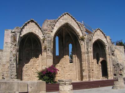 At the eastern edge of the Medieval City, near the Gate of the Virgin, lie the ruins of this Gothic Roman Catholic Church, dating back to the 14th century. Likely one of the earliest constructions by the Knights Hospitaller, the structure was later converted into a mosque during the Turkish occupation. Despite suffering damage from World War II bombings, its grand original Gothic style remains impressive.