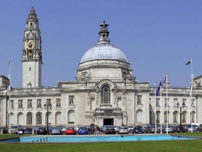City Hall is located in Cathays Park civic center. Opened in October, 1906, it was meant to replace the fourth town hall on Saint Mary Street. The hall was designed in the Edwardian Baroque style by the firm of Lancaster, Stewart and Richards.