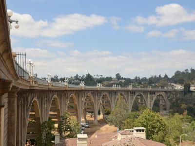 In Pasadena, the Colorado Street Bridge crosses over the Arroyo Seco and is a landmark concrete arch bridge. This bridge was built in 1912 as a replacement for the original Scoville Bridge.