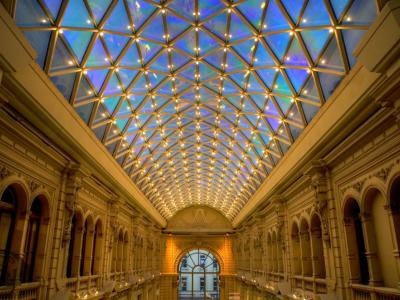 The Borges Cultural Center is located within the Galerias Pacifico, a historic landmark in Buenos Aires. The center hosts both art exhibitions and music and theater performances. Most of the exhibitions are temporary except for one permanent exhibition dedicated to the life, times and works of Jorges Luis Borges. The top floor has an exhibition space with an artistic window pane studded roof. These offer plenty of light during the day and are spectacular when lit up at night.