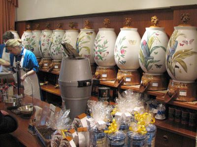 Coming mostly out of Ethiopia, Dallmayr’s “coffee specialists” visit the regions of Sidamo and Harrar to hand pick the selection. And if that is not fine enough for you, the precise, pre-roasting refinement process serves to remove any possible irritants or bitter components from the blend. In the Dallmayr shop in downtown Munich, the unground coffee beans are stored behind the counter in hand-painted porcelain vases from Nymphenburg and are measured out using the historic beam-balances that were designed specifically for Dallmayr. A bag of coffee here will cost around 5 Euros.