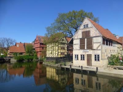 Buildings located in the open-air museum include workshops, grocers, shops, historical gardens, a post office, a customs office, a school and a theatre. Museum staff work in historic roles like merchants and blacksmiths.