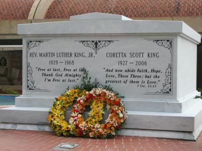 Serving as both a museum and a hub of social-justice activity, the King Center is also Martin Luther King, Jr.'s final resting place, attracting tens of thousands of visitors annually as a living memorial to the inspiring leader. Dr. King's white-marble crypt lies outside in the Freedom Plaza, surrounded by a magnificent five-tiered Reflecting Pool that symbolizes the life-giving power of water. The tomb bears an inscription of his famous words: “Free at Last. Free at Last. Thank God Almighty I’m Free at Last.”