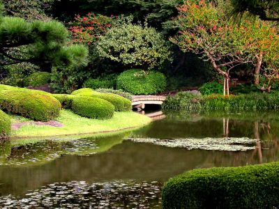 In the spring season, the gardens burst into life with the enchanting sight of blooming Sakura (cherry blossom) trees, featuring nearly 30 distinct cherry tree species. Additionally, the gardens boast an array of noteworthy flora, including bamboo, peonies, a charming grove of plum trees, and graceful willow trees. In total, the gardens house more than one thousand species of native Japanese plants. A significant feature of the landscape is the vast green lawn known as Oshibahu, once a venue for imperial ceremonies. Within the garden's boundaries, you'll find two guardhouses that once dutifully protected the gates and the remnants of a stone tower known as the Tenshu Dai.