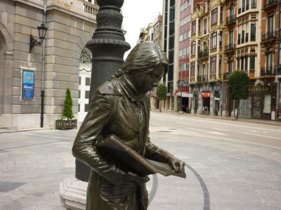 Depicting a young woman absorbed in reading while walking, the statue captures a moment of intellectual escape. She clutches a book, a folder, and a notebook, walking onward seemingly oblivious to the world around her-a poetic nod to Oviedo’s university traditions and its association with learning and hope.
