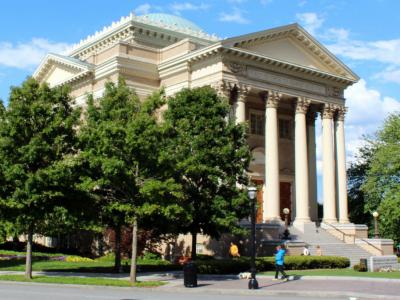 This building's prominence is evident from its monumental, elevated, and symmetric exterior that has a formal and ancient appearance. The interior is just as impressive but somewhat reserved and uncanny due to its soaring symmetric design. Known as the "auditorium" rather than the "sanctuary," it is not suitable for weddings or funerals. Despite its Beaux Arts style, it is a house of worship.