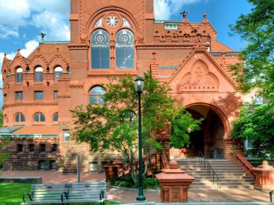 The Fisher Fine Arts Library served as the main library for the University of Pennsylvania from 1891 to 1962. It was an impressive architectural creation designed by the renowned Philadelphia architect Frank Furness (1839–1912). This imposing structure, constructed from red sandstone, brick, and terra-cotta in the Venetian Gothic style, combined elements of a fortress and a cathedral. Construction began with the laying of the cornerstone in October 1888, and it was finished in late 1890, with the official dedication taking place in February 1891.