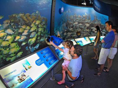 Upon arriving, you enter the section that contains replicas of hammocks, mangrove forests, seagrass beds, and dunes. One of the center's key attractions is a 2,500-gallon living reef exhibit, which showcases the vibrant coral reefs found in the waters surrounding the Florida Keys. The exhibit features a variety of marine species, including colorful tropical fish, sea turtles, and even sharks. Also, there is a replica of the NOAA undersea laboratory, plus a 3D video about underwater reefs and shipwrecks.