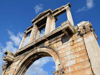 Resembling a triumphal arch, this monumental gateway was built to celebrate the arrival of Roman Emperor Hadrian and pay tribute to his many benefactions to the city. It serves as a symbolic passage between the ancient part of Athens and the newly developed district, largely conceived during Hadrian's rule, which extended until the year 138 A.D. Hadrian was a great admirer of classical Greek literature, philosophy, and arts. During his reign, he generously sponsored several significant projects in Athens, including Hadrian's Library, the Hadrianic Aqueduct, and the completion of the Temple of Olympian Zeus, among others.