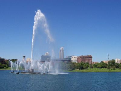 Opened in 1990, the park was built on land recovered after the controversial demolition of the Jobbers Canyon Historic District. The area, filled with warehouses dating to the 1870s, was integral to the growth and development of Omaha. Along with the lake the park features a paved walking trail encircling area. There are three fountains, including a large, modern, $1.5 million dollar computerized fountain that projects water 300 feet (91 m) into the air and features a nighttime light show.
