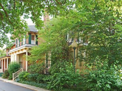 Jacob Hoffstetter House stands as a striking testament to late Victorian elegance. Built in 1887 for German immigrant Jacob Hoffstetter, the two-story red‑brick residence sits proudly on a coursed ashlar foundation. Guests will be drawn to its Queen Anne details-segmental-arched windows capped with carved stone keystones, oculus attic windows, king-post gable ornaments adorned with pierced trefoils, and bracketed cornices gracing the bay windows.