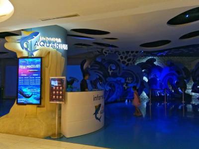 For those seeking a more adventurous encounter, the Sea Explorer Simulator offers a 5D submarine journey through the ocean's depths, providing an immersive experience of the underwater world. The Aquatrekking feature in the main tank simulates walking on the sea floor, where visitors can observe colorful corals, groupers, and a Black Blotch Stingray in their natural habitats. Additionally, the Underwater Fantasy Diving experience allows guests to dive alongside black-tip and white-tip sharks, nurse sharks, sea turtles, and stingrays, offering a close-up look at these majestic creatures.