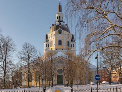 The church's architecture reflects the work of three architects over time. Originally designed by Jean de la Vallée in the 17th century, the church featured classical elements. After a fire in 1723, Göran Josua Adelcrantz, the city's architect, rebuilt the church with a larger, octagonal tower. Another fire in 1990 left only the exterior walls standing. Architect Ove Hidemark led the restoration, faithfully recreating the original 17th-century design, including a new organ by J. L. van den Heuvel Orgelbouw.