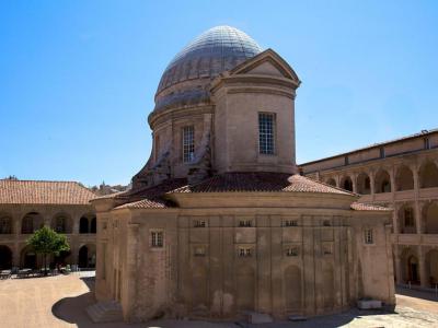 Vieille Charité Center, built between 1671 and 1749, was originally an almshouse and now serves as a museum and cultural center. The main structure is a large rectangular complex constructed of pink and yellow-tinted molasse stone. Its austere exterior, with no outward-facing windows, encloses three levels of arcaded galleries overlooking a peaceful inner courtyard. At the center stands a magnificent Baroque chapel designed by Pierre Puget, featuring a circular plan, an ellipsoidal dome, and a portico supported by Corinthian columns.