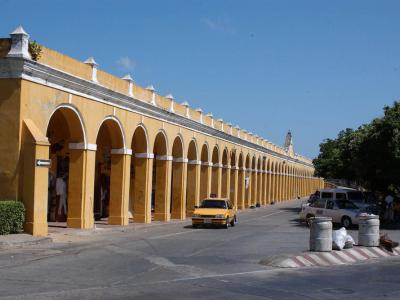 Exploring the Old City of Cartagena one cannot miss the immense arcade of columns and arches of bright golden color, located between the forts of Santa Clara and Santa Catalina. Known as Las Bóvedas (The Vaults), this building is indeed massive. Its walls – 15 meters thick(!) – were originally intended to protect a military storehouse.