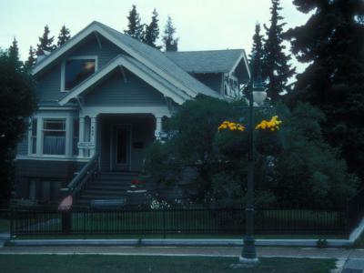 Now painted blue and gray with white trim, the house has undergone a few modifications, including a renovated basement that expanded its footprint to 2,500 square feet. Originally a private residence, the house today serves as a law offices, marking its shift from personal to professional use. Listed on the National Register of Historic Places in 1986, it stands as a well-preserved example of Anchorage’s early bungalow architecture.