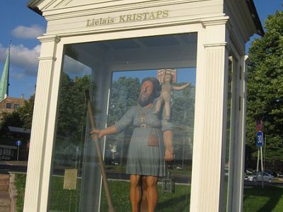 In 1683, a wooden statue of Big Christopher with the baby was installed in the place where the hero supposedly lived. Riga citizens come regularly to the statue; they bring flowers and light candles when asking for Big Christopher's protection. Today, the original statue can be seen at the Latvian Museum of History and Navigation, while its replica adorns the Daugava river bank.