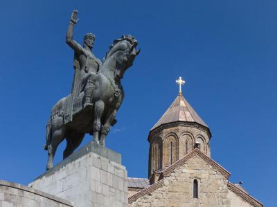 The equestrian statue depicts the king mounted on horseback, gazing resolutely over the city he established. His raised hand, extended forward, symbolizes both protection and leadership—embodying the courage and vision of a ruler who fortified Georgia during an era marked by regional rivalries. In Gorgasali’s time, the Caucasus was a crossroads of empires—Byzantine, Persian, and later Arab—all competing for control. The king navigated these pressures with diplomacy and strength, defending Georgia’s independence and Christian faith while transforming Tbilisi into a thriving political and cultural center.