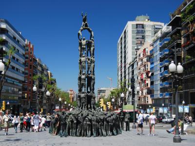 The Monument to the Castellers (the human towers) is a sculpture created by Catalan sculptor Francesc Anglès i Garcia. Inaugurated on May 29, 1999, this bronze sculpture stands eleven meters tall and weighs twelve tons.