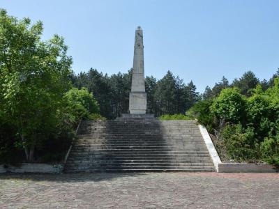 The monument is an obelisk with two bronze sculptures of partisan fighters holding their weapons. Reliefs show the Bulgarian people, a welcome to the Soviet Army and a celebration on September 9, 1944.