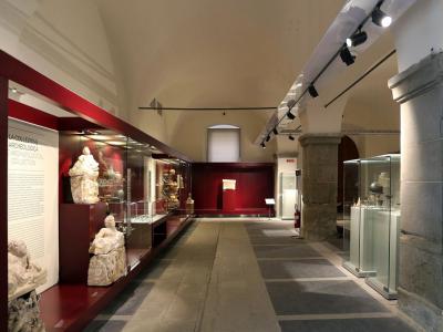 The ground floor of the Bottini section holds collections from the Giovanni Fattori Civic Museum and the Labronica Library. There are about 600 objects in numismatic and archeological collections. The Etruscan and Roman artifacts are mainly from the collection of Enrico Chiellini. The medieval section has documents and frescoes.