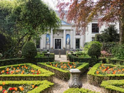 Notable highlights include the ornate copper balustrade gracing the staircase, charming grisaille paintings portraying classical figures such as Alexander the Great and Julius Caesar, and a bedroom known as the "painted room", adorned with a Romantic painting of Italy (such were the artistic embellishments favored by Amsterdam's bourgeoisie). Among the curious aspects of the house are the faux bedroom doors; the 18th-century owners were so committed to preserving symmetry that they concealed the actual doors and created imitation, decorative replacements in their "correct" positions instead. Another peculiar feature can be found at the end of the garden, where the old coach house boasts trompe l'oeil windows; once again, symmetry dictated that the building must have windows, but no respectable wealthy individual wanted to be observed by their servants – hence the optical illusion. This well-maintained secret garden remains relatively undiscovered by tourists, offering you a peaceful setting to soak in the ambiance of bygone glory.