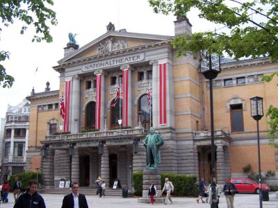 The theater's first performances featured works by Ludvig Holberg, Henrik Ibsen, and Bjornstjerne Bjornson. The latter two are commemorated with statues flanking the front entrance. Likewise, the names of all three are inscribed on the building's facade.